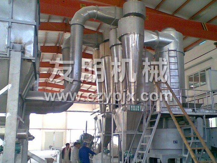 7、干燥室內周向氣速高,物料停留時間短,有效防止物料粘壁及熱敏性物料變質現(xiàn)象,達到高效、快速、小設備、大生產(chǎn)。